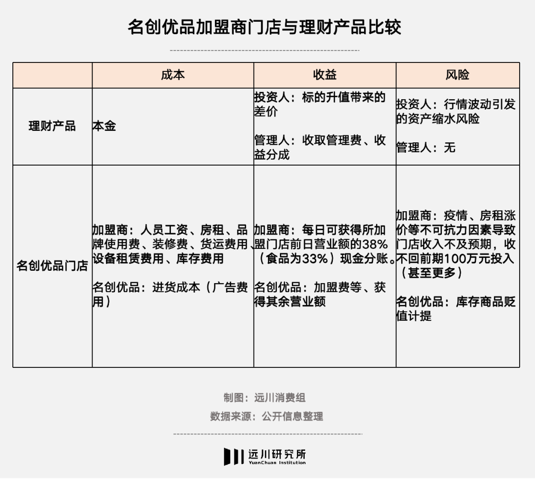 用券商的话来说[4],加入名创的年化收益率达到16%,比大多数银行理财产品的收益率还要高3-4倍,公司更是喊出了1-2年收回成本的口号。
