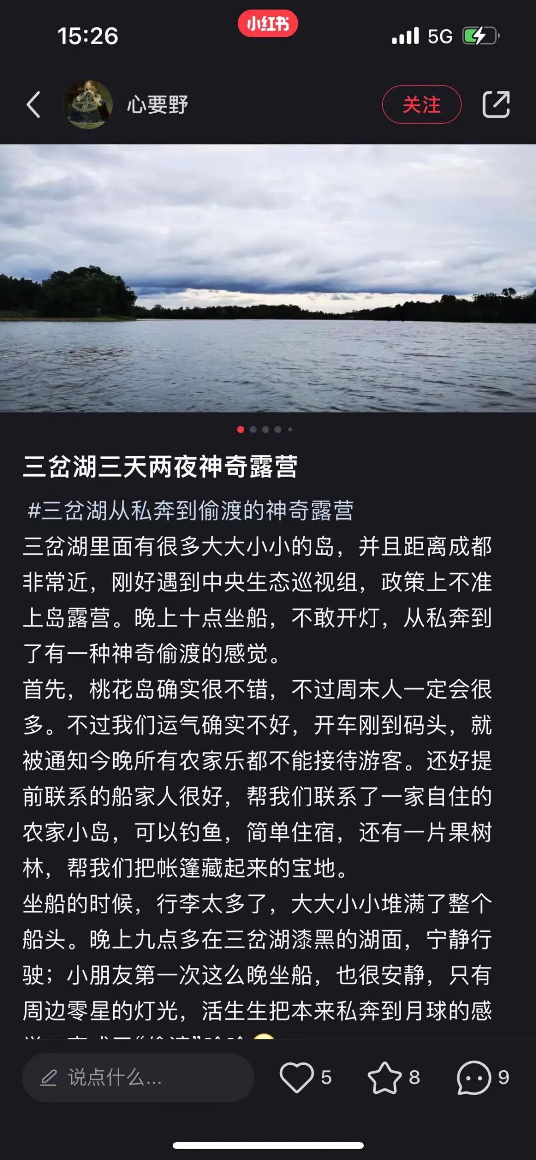 笔记里,露营的风是轻柔的,露营的水是温柔的。哪怕危险都是充满野趣的。
