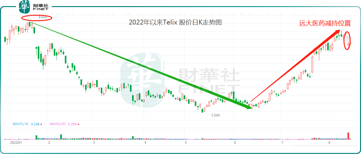 8月12日,在Telix股价走高之际,远大医药也发布公告表示,减持了Telix约一半的股份,股份数量为1000万股,套现约7300万澳元(折合人民币为3.51亿元;折合港币为4.05亿港元),未来12个月内不再出售余下的1094.72万股Telix股份。