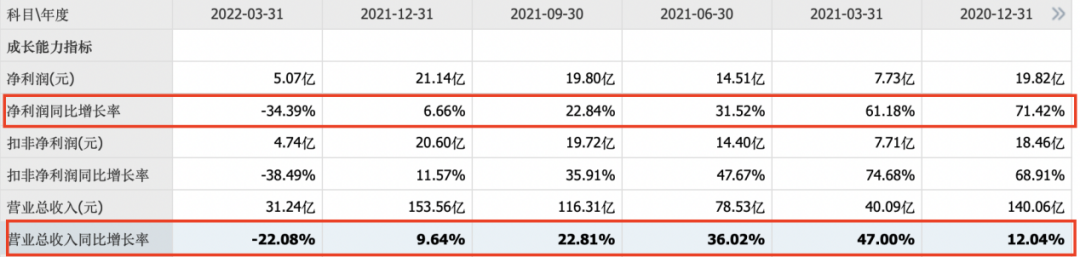 翻看其重组上市至今的业绩,虽然营收从2018年的96.61亿元增至2021年的153.36亿元,年均复合增速达16.65%,净利润从同期的8.66亿元增至21.14亿元,年均复合增速达34.67%,营收与净利润双双保持双位数的增长趋势,但不可否认的是,其营收与净利的同比增速双双呈现下降趋势。