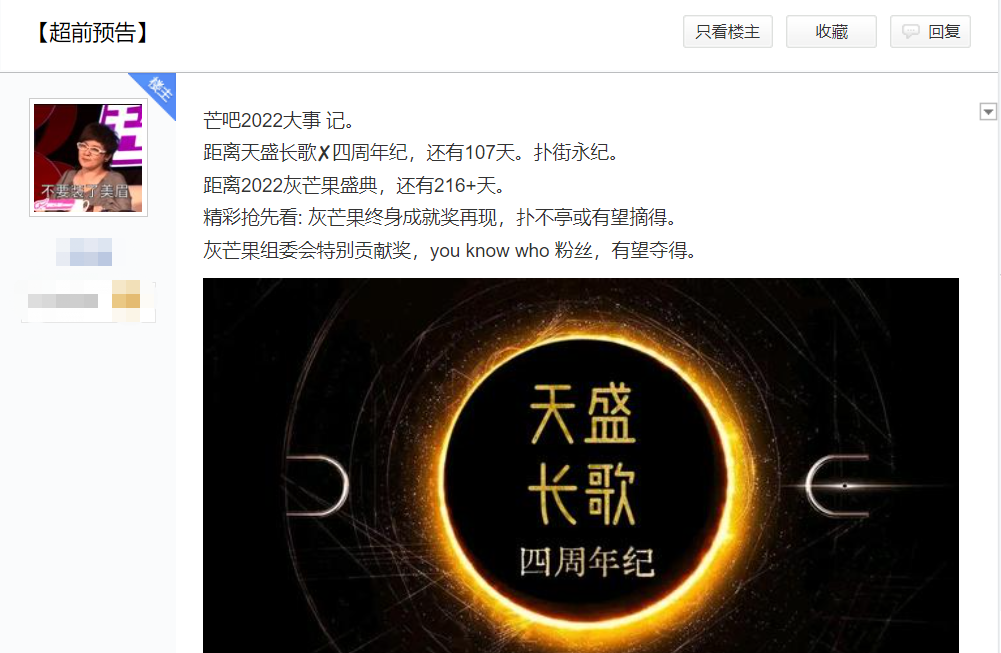 三个多月前,湖南卫视吧里的芒果精预告并预测,《天盛长歌》有望在今年的“灰芒果盛典”上摘得大奖。(“灰芒果盛典”是芒果精每年自发组织的,以收视率为标准的盛典。)