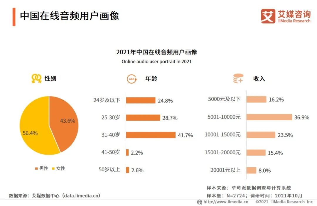 根据易观数据的统计,2021年中国在线音频娱乐市场规模达到220亿元,预计2022年将达349亿元。而中国在线音频市场用户规模已达到4.25亿。