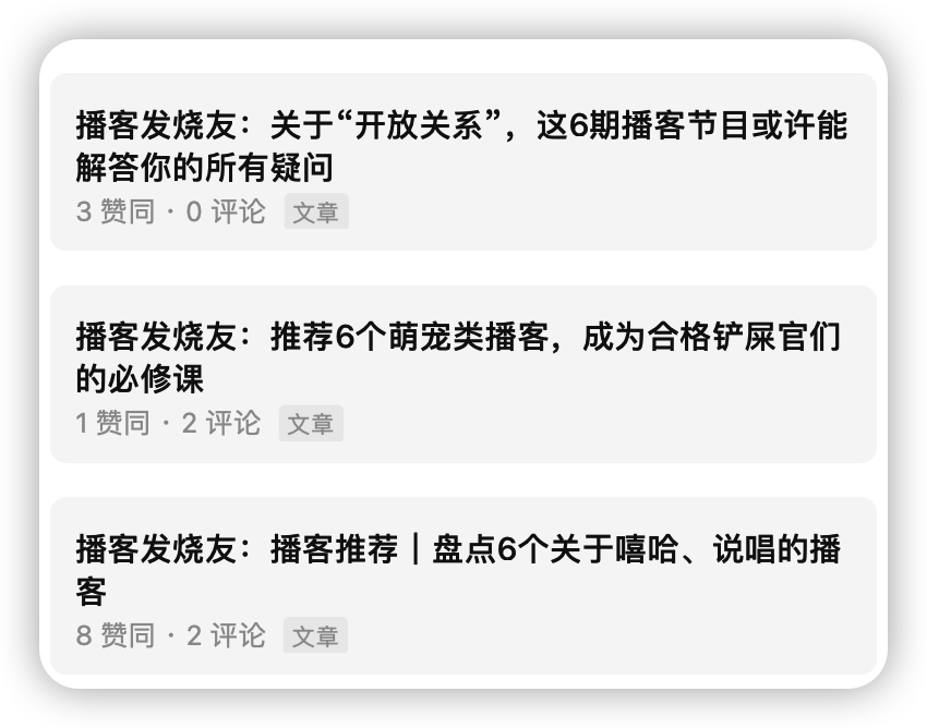 究其原因,一来声音能够给人亲近感,而文字给人距离感;二来,阅读理解文字需要更加费力和主动介入,而听别人谈论,不需要太多的精力;再来,播客可以随时点开、暂停,被其他事情打断后,又可以随时点开,思路也可以轻松跟上,但文章关闭了之后可能就马上忘记了。