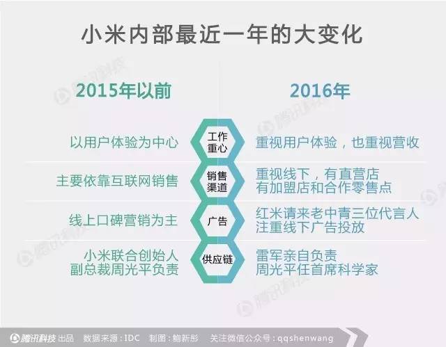 小米信奉干掉渠道只做线上的模式,通过小米网等线上渠道销售手机,可以省去渠道差价和零售店成本,消费者就可以最实惠的价格买到手机。但去年以来,手机线上渠道的出货量增速开始放缓,目前超过2/3的用户仍然通过线下渠道进行购买,小米不得不针对此做出调整,今年之内要在全国范围内开设60家“小米之家”线下店。