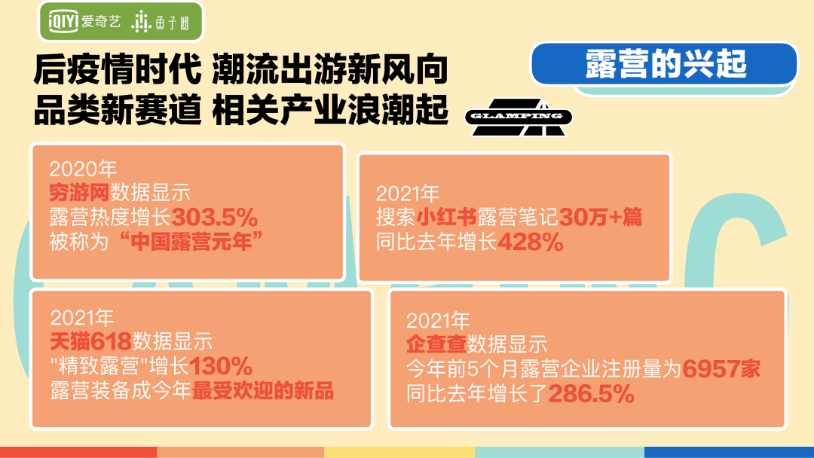 后疫情时代,露营成为了青年们最潮的旅行方式。据穷游网数据显示,2020年露营热度增长303.5%,被称为“精致露营元年”。