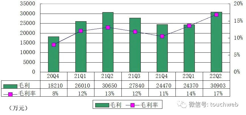 斗鱼2022年第二季度毛利润为3.09亿元(约4610万美元),而2021年同期为3.065亿元。毛利率为16.9%,而2021年同期为13.1%。