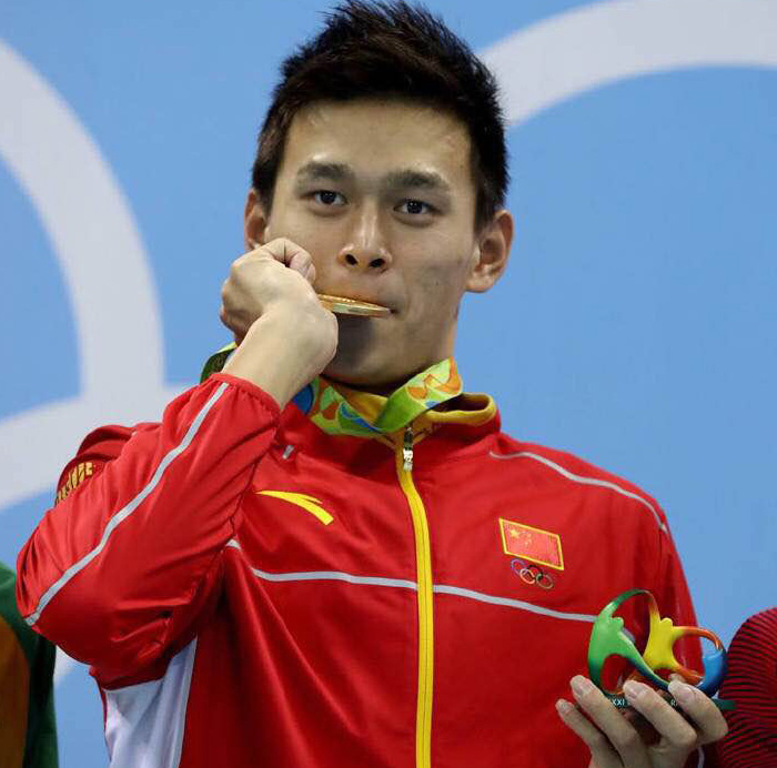 ▲图:2016年8月9日,“中国飞鱼”孙杨勇夺里约奥运会男子200米自由泳金牌,身穿安踏打造的“冠军龙服”登上领奖台!