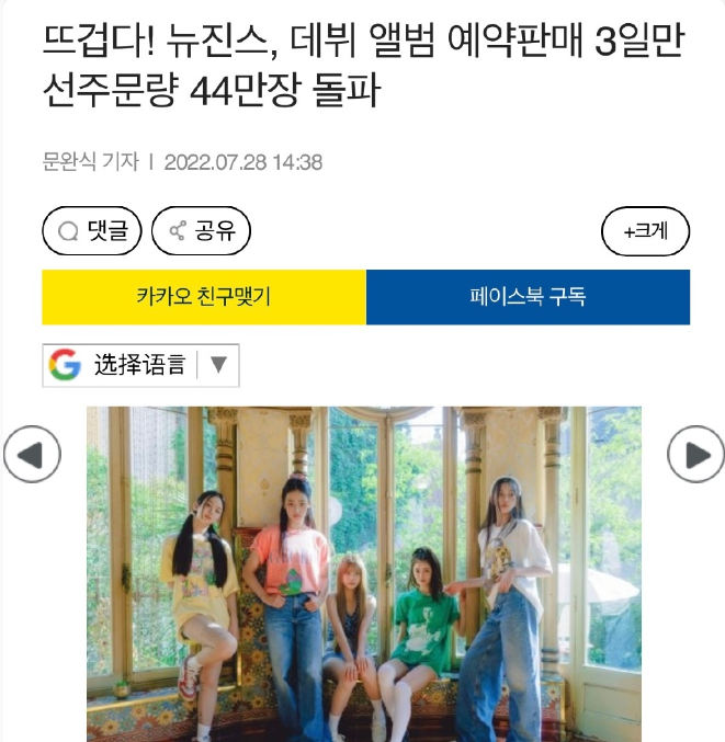 但有意思的是,这几年韩团放出的销量大字报中,中国粉丝贡献的专辑比例却在持续上升。不仅老团如此,就连出道没几天的新团也一样。韩国娱乐公司HYBE新推出的女团NewJeans,连舞台都还没有,3天专辑初动量44.4万,中国粉丝贡献了10万张。