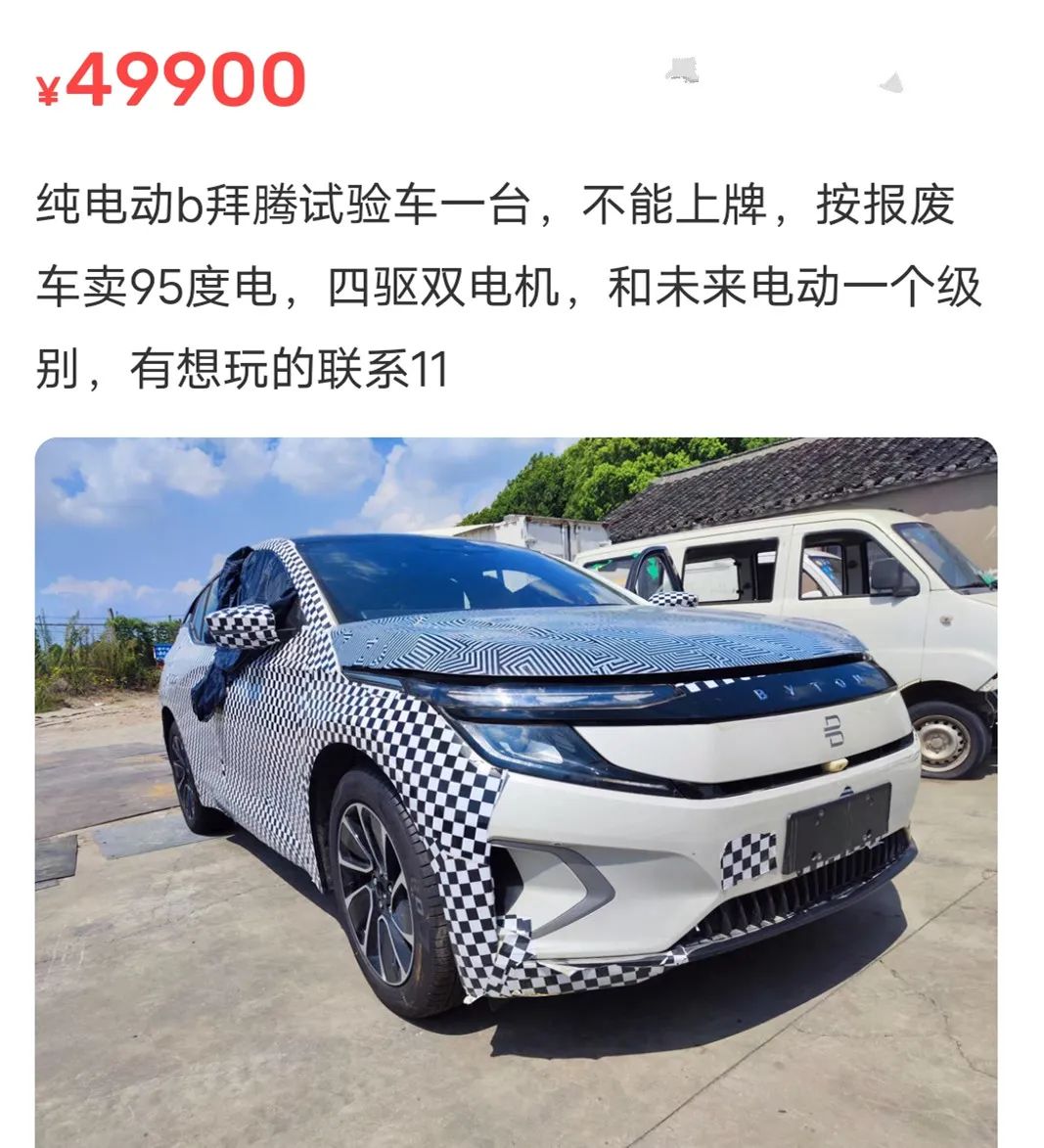 8月的第一天,在某二手物品交易平台,一位卖家5万元甩卖一辆还没撕下“伪装”的拜腾试制车,让这个沉寂已久的新势力又一次闯入大众视线。该平台信息显示,这个内容刚发布几天,就引来了超过12万的浏览量,数百位“买家”询价。其中一位网友留言称:拜腾花84亿造出了30多辆试制车,换算下来一辆车价值2亿多,5万不亏。