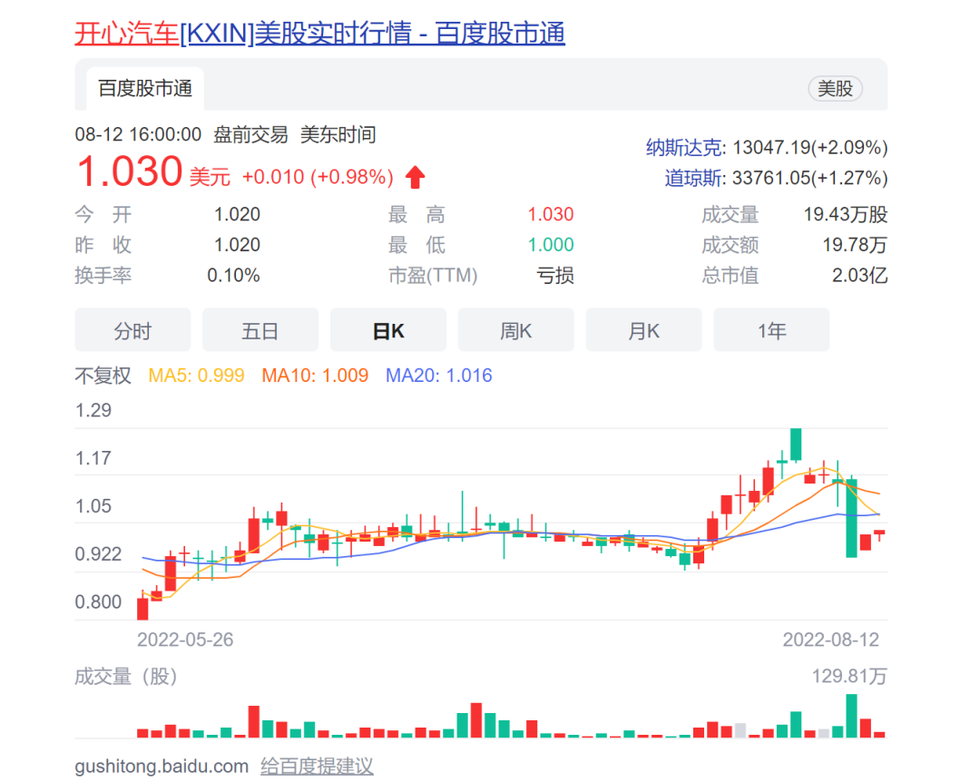 8月4号,就在开心汽车宣布“已经获得多家投资机构合计7亿美元的专项投资意向”当天,开心汽车盘前涨超15%,是最近三个月以来的单日最高股价。