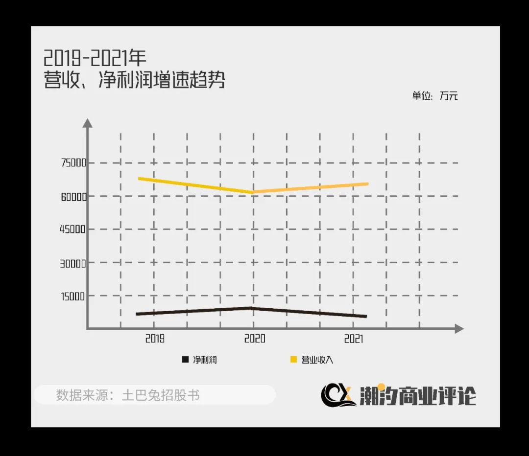 据资料显示2019年-2021年,土巴兔的营业收入分别为6.8亿元、6.15亿元和6.54亿元;净利润分别为7967.9万元、8659.75万元、7032.95万元,营收和净利润均遇到增长瓶颈。