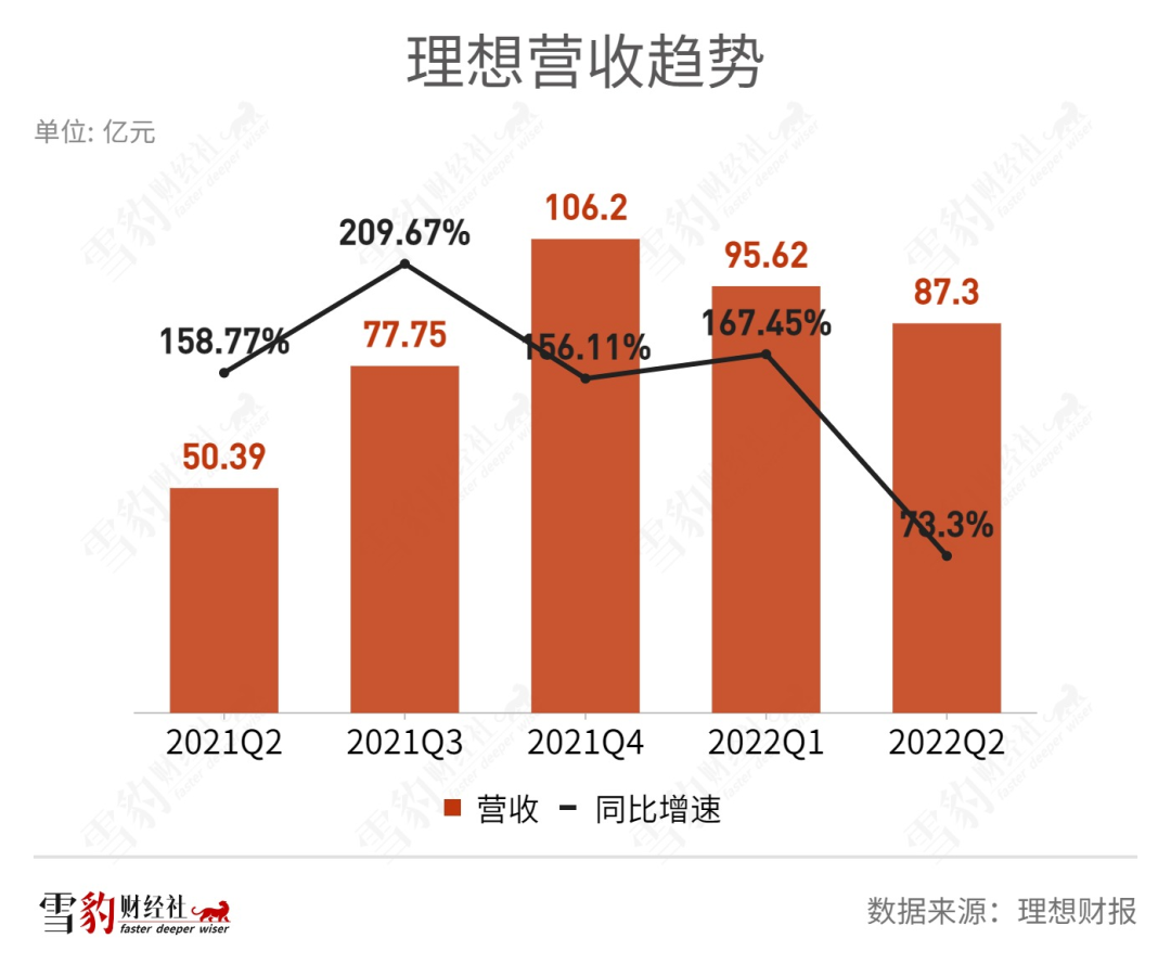 二季度,理想营收同比增长73%至87.3亿元,与前几个季度的三位数高增速对比相形见绌。这一成绩,还是在4月理想ONE提价1.18万元的情况下创造的。