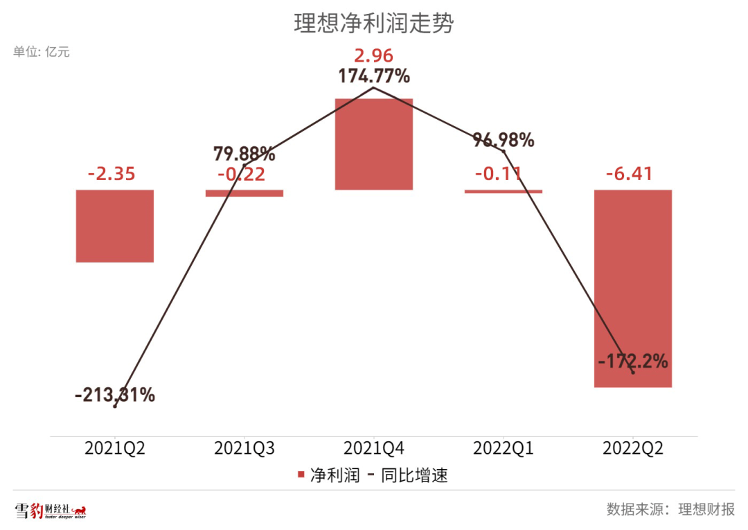 但在新势力中最接近盈利的理想,在4月初理想ONE提价超1万元的情况下,Q2净亏损同比扩大172.2%至6.41亿元,远超市场预期的亏损5.1亿元,创近十个季度新高。相比之下,理想去年同期亏损2.36亿元,今年一季度亏损1090万元。