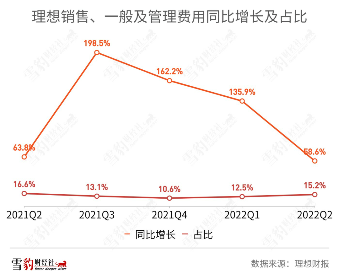 在营销费用方面,理想二季度的销售、一般及管理费用为13.3亿元,同比增长58.6%。财报称,这是由于雇员增加及公司销售网络的扩大。
