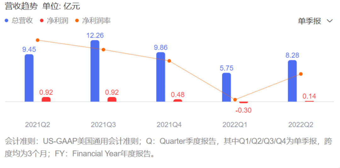 2022年第二季度小牛电动收入8.276亿元,同比下降12.4%,净利润1440万元,同比下降84.3%。