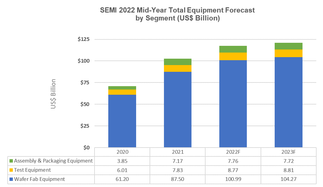 ▲2022年年中半导体设备细分市场规模预测(图源:SEMI)