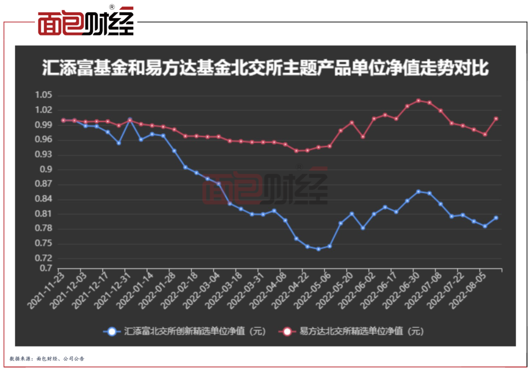 然而,成立近9个月以来,本站在同一起跑线上的这两只北交所主题产品,业绩表现出现了明显分化。