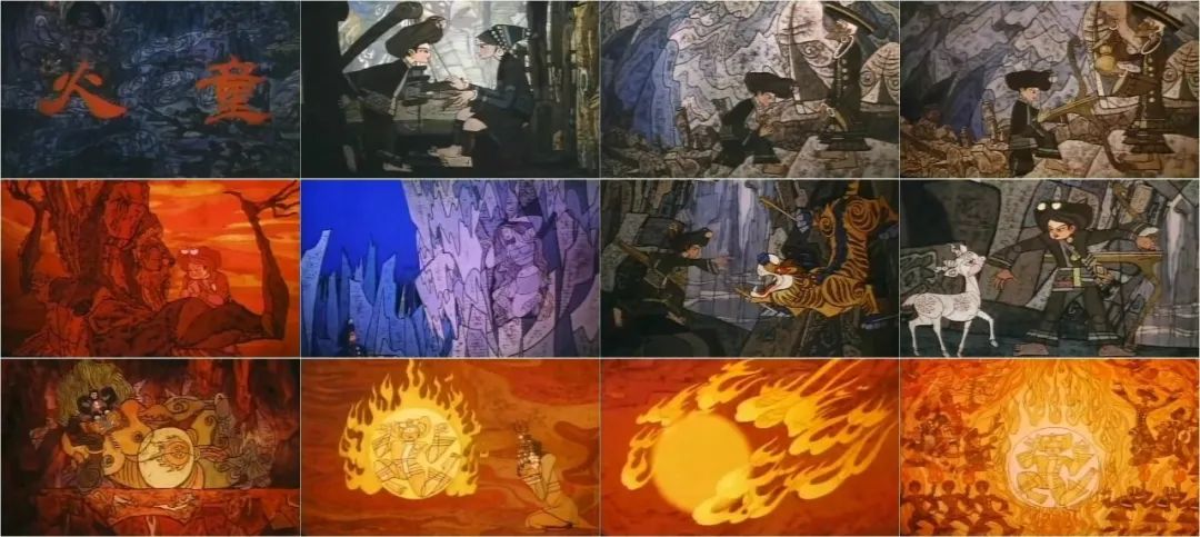 创作于1984年的《火童》是一部剪纸动画,取材自哈尼族民间传说,讲述了哈尼族少年明扎为人民夺回火种最后牺牲自己的故事。多样性的线条体现人物特征和角色性格,以及对哈尼族民族纹样特色的复原,都是《火童》所具备的独特艺术审美价值。
