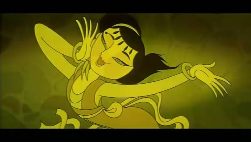 不过片中对魔鬼的夸张刻画,其动作表情的狰狞感,捉住明扎后对其折磨的情节,以大量线条灵活运用的表现手法,却让当时的小观众望而生畏。当我们如今回过头去再看一次这部动画片,魔鬼越是狠毒,越能衬托出明扎对于舍生取义的坚决和无畏,更让观众对以明扎父亲为代表的一代代哈尼族人为了夺回火种的牺牲而悲恸。