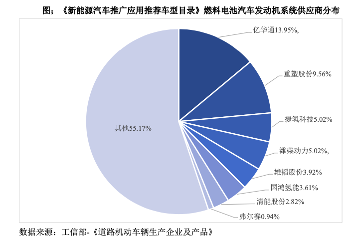 在燃料电池市场,竞争日趋激烈,目前捷氢科技并不是份额最大的玩家,亿华通、重塑股份都排在捷氢科技之前,潍柴动力、雄韬股份等也具备了一定竞争力。