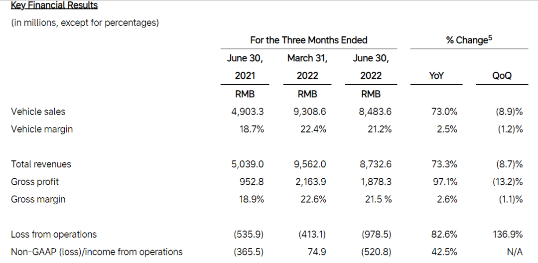 理想汽车2022Q2部分财务数据,截图自财报