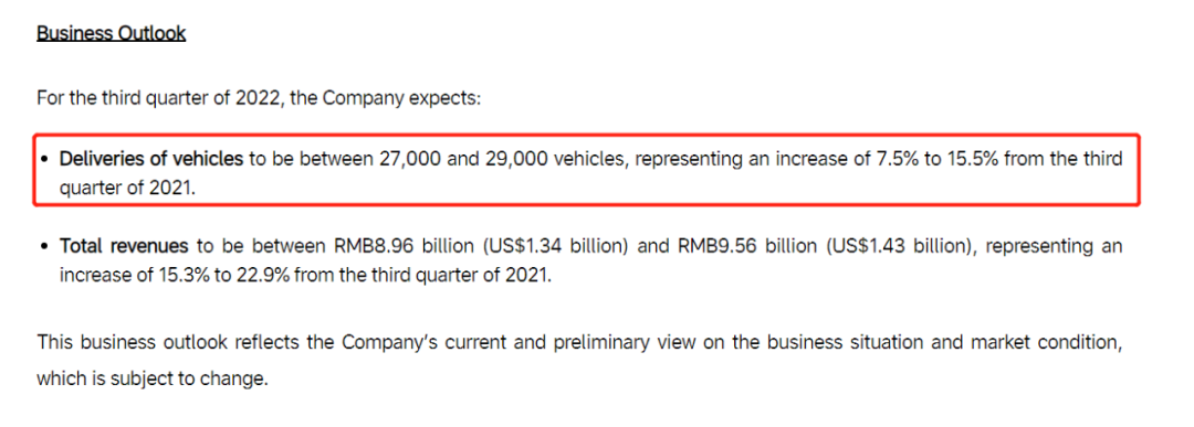 理想汽车对于第三季度给出的指引,截图自财报