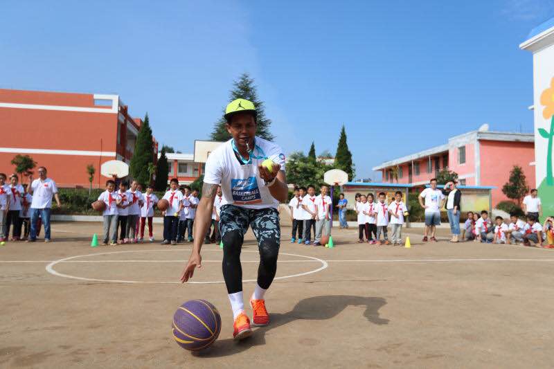 更令他们兴奋的是法籍篮球教练Stevens Servina与他们的篮球互动课。Stevens曾任耐克篮球训练营主教练,在农村教孩子们如何热身、运球、折返跑。