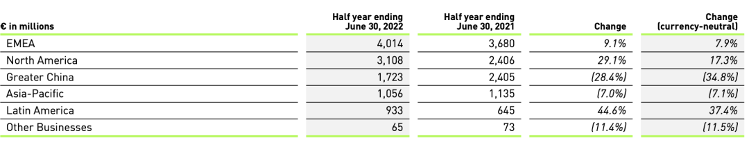 财报中提到,疫情影响下越南供应链受限带来了两亿欧元左右的损失,暂停俄罗斯业务也也使该季度收入减少一亿欧元左右。至于大中华区,挑战的缘由也归到了疫情上。