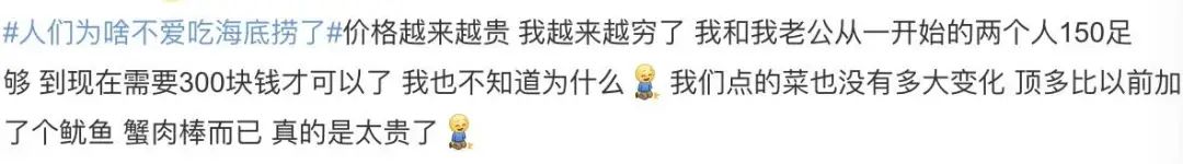 网友称海底捞“太贵” 来源 / 微博