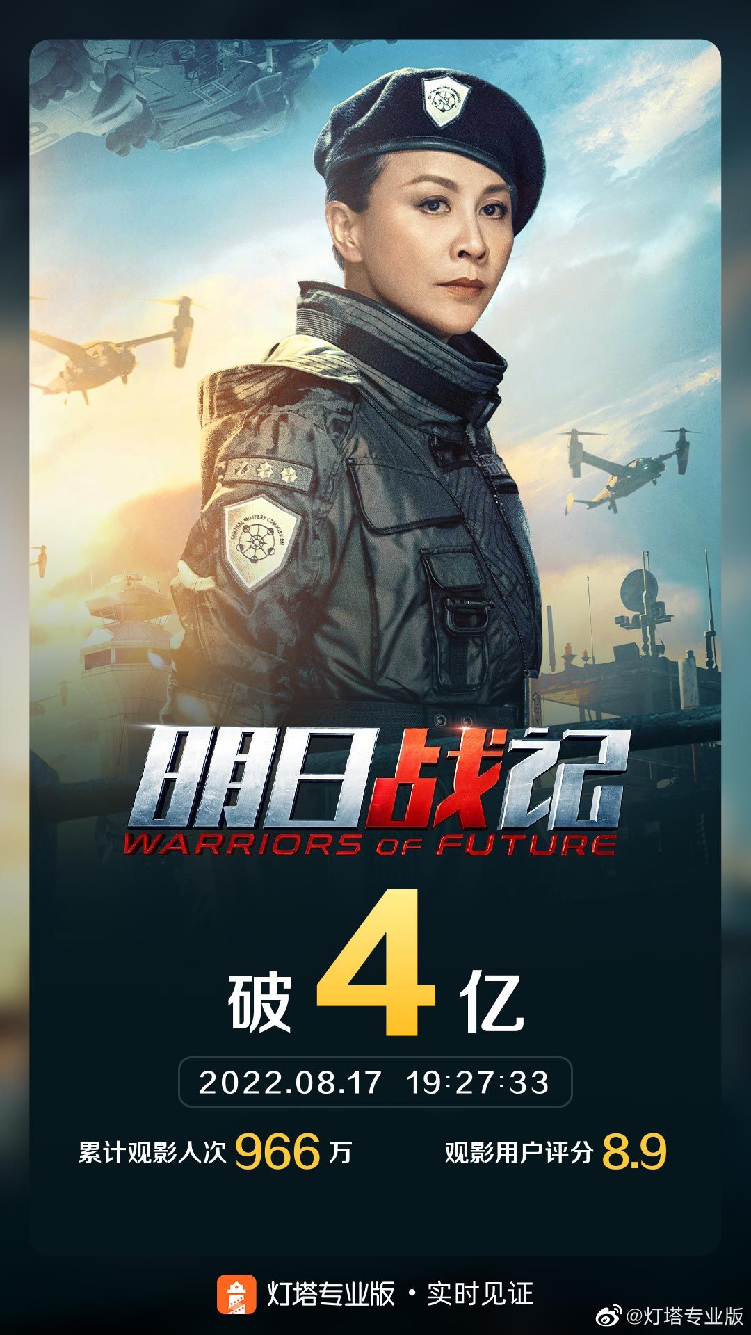 据灯塔专业版实时数据,截至8月17日19时27分,影片《明日战记》票房突破4亿元。