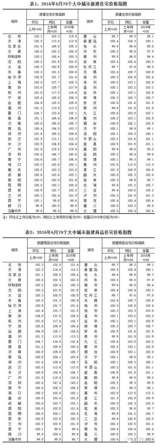 图1.2016年6月份70个大中城市住宅销售价格变动情况 图表来源|中国统计局