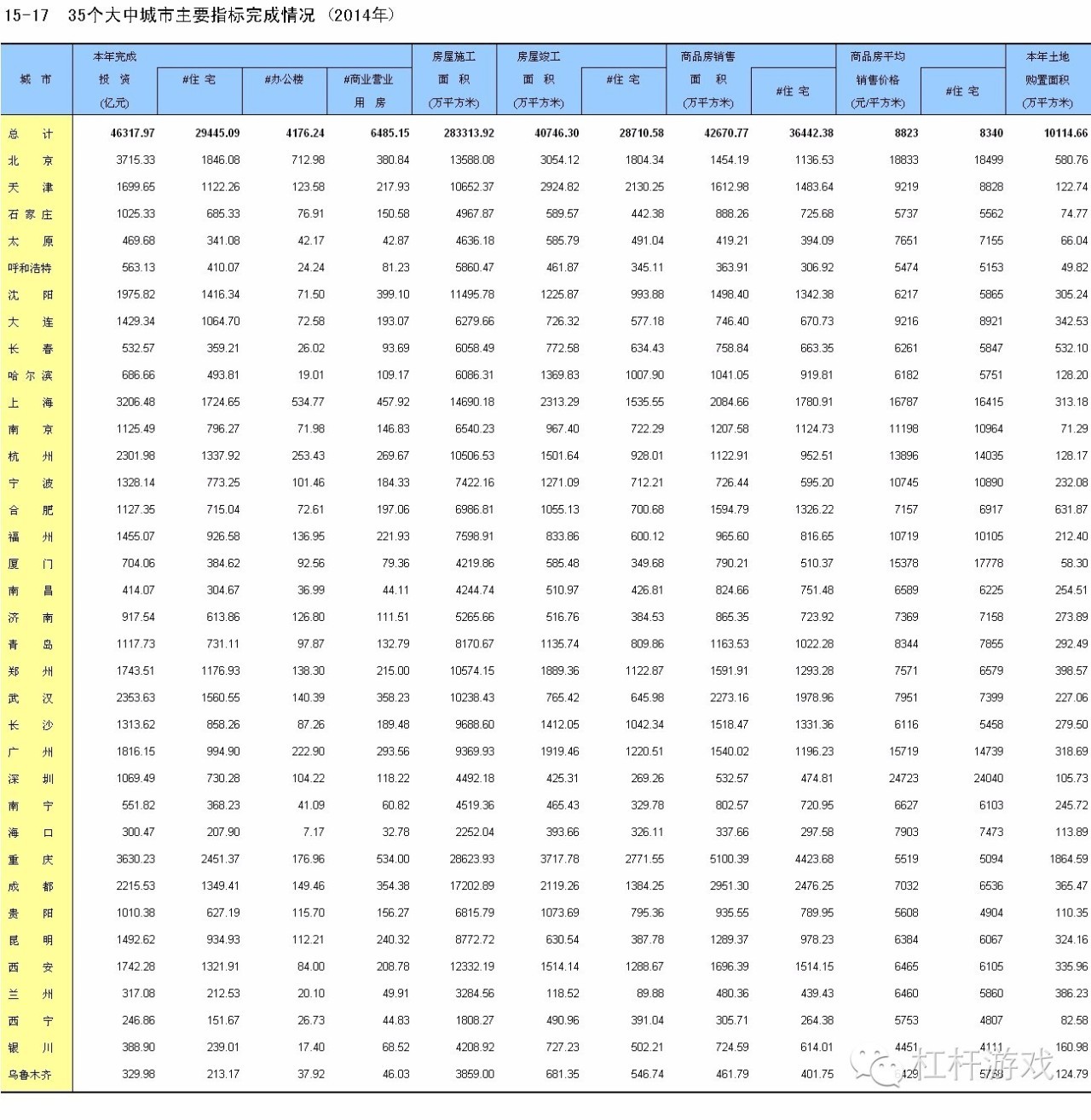 图4.35个大中城市2014年房地产主要指标 图表来源|2015中国统计年鉴