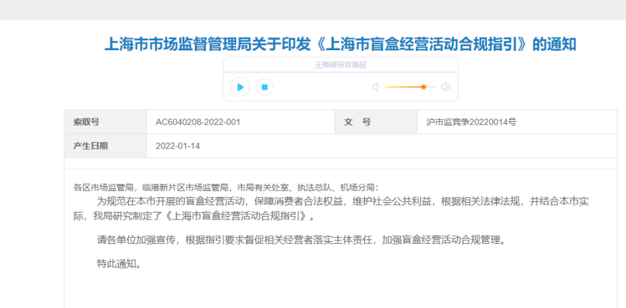 据了解,该《指引》共二十七条内容,对盲盒经营的各个方面都制定了相关规定,涉及盲盒销售、质量、售后等多个环节,引起业内广泛关注。