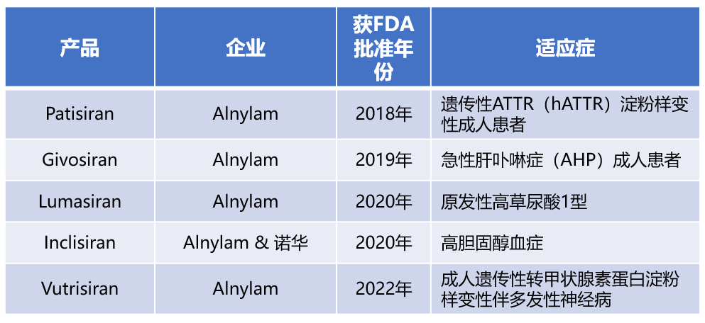 siRNA 疗法:5款上市产品均由Alnylam 开发或参与开发
