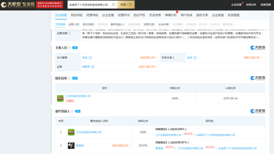除此之外,据向善财经观察近年来跨界进军宠物赛道似乎并非来伊份一家,据天眼查APP数据显示,早在2020年三只松鼠推出了旗下首个宠物品牌“养了个毛孩”;同年11月,健合集团以1.61亿美元收购美国宠物营养品公司Solid Gold;而在今年5月,伊利同样宣布进军宠物粮赛道……
