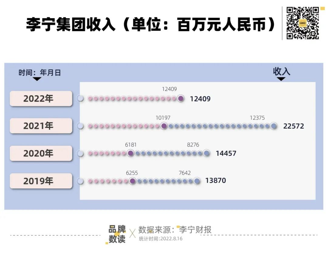 但运动服饰却显示出较强的弹性。8月12日,李宁发布2022年上半年中期报告。数据显示,李宁集团收入124.1亿元,同比上升21.7%;毛利62亿元,同比上升8.8%;经营利润26.4亿元,同比上升4.1%;经营利润率由24.9%下降至21.3 %;净利率由19.2%下降至17.6%;毛利率下降5.9个百分点至50.0%。