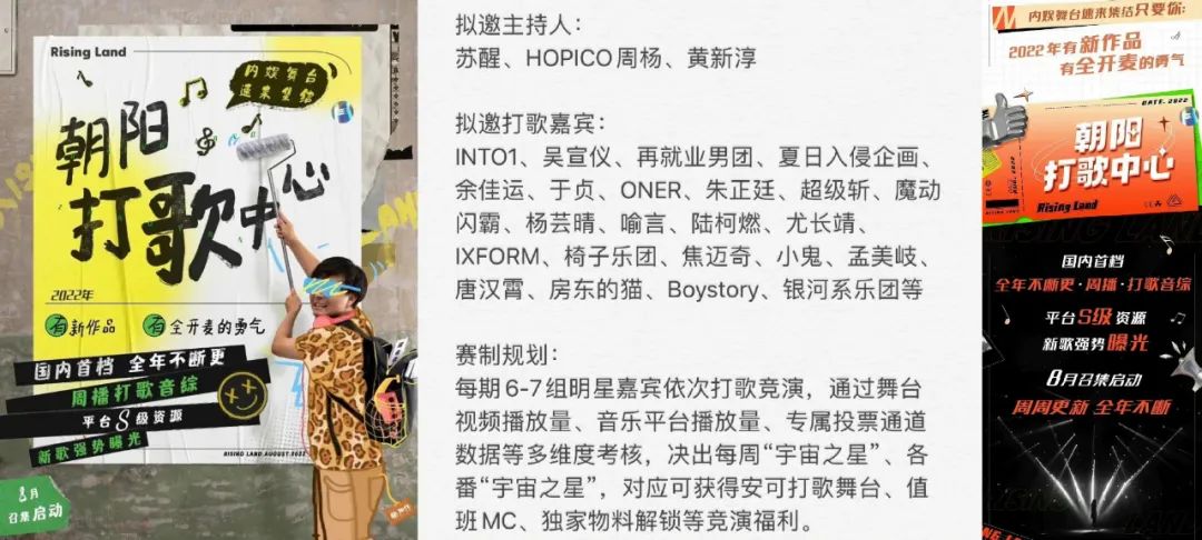 虽然101系秀综被叫停,但内娱对偶像市场的消费需求一直没变,所以说这些年像《炙热的我们》《爆裂舞台》这种整合秀人资源制作的音综不断被孵化,而像新出的《朝阳打歌中心》等打歌综艺也属于类似范畴,青春舞台竞演节目仍然是当下很受综艺受众追捧的类型。