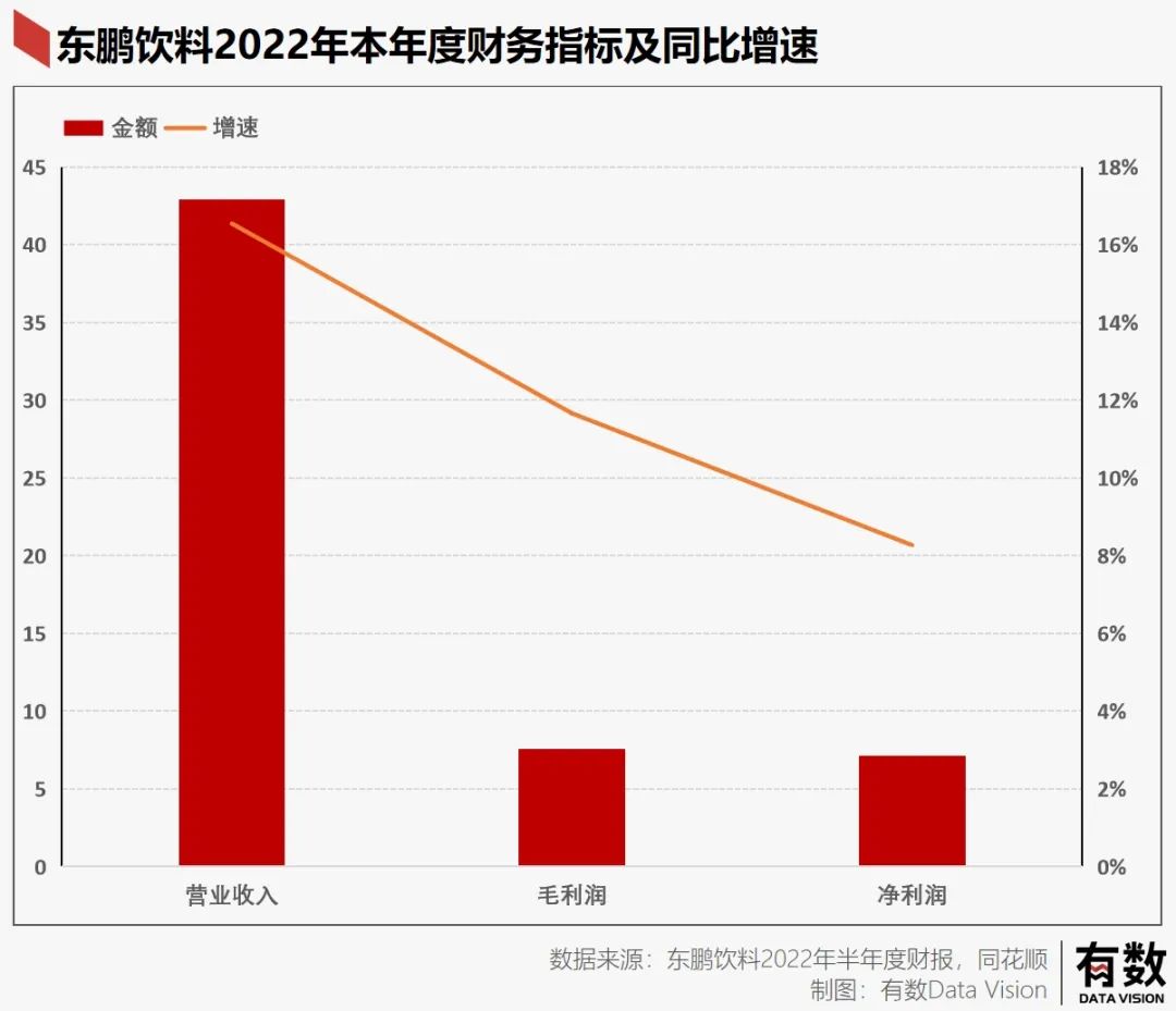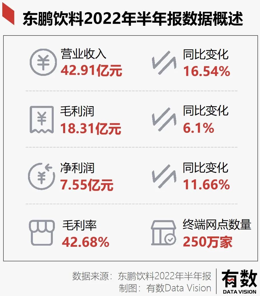 东鹏特饮的2022年上半年年报显示,营收42.91亿,同比增长16.54%,净利润7.55亿,同比增长11.66%,扣非净利润7.15亿,同比增长8.27%。