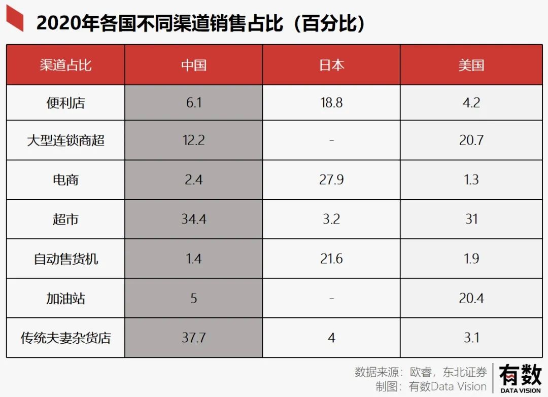 根据欧睿数据显示,国内饮料各种渠道中,夫妻杂货店占比37.7%为第一大渠道,其次是超市34.4%与大型连锁商超12.2%。换句话说,线下依旧是饮料的主战场。
