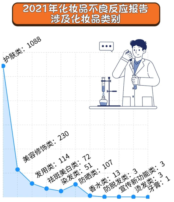 一方面,护肤品的受众群体最为广泛,消费者基数大,出现不良反应的情况也就更多;另一方面,也反映出护肤品的安全性还有待进一步加强监管。