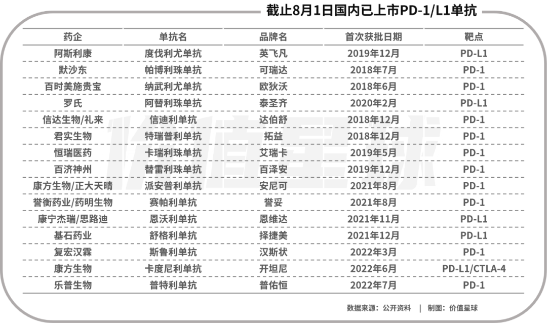 国内已上市的基于PD-1/PD-L1靶向的单抗注射药物,已有15种,其中包括11款国产和4款进口。此外,还有数十个PD-1/L1临床项目正在进行中,这个赛道可谓竞争异常白热化。
