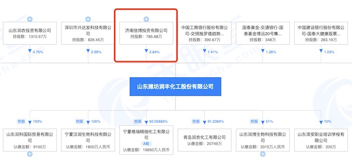 界面新闻记者从天眼查获悉,持股润丰股份2.84%的第四大股东为济南信博投资有限公司(下称:济南信博)。