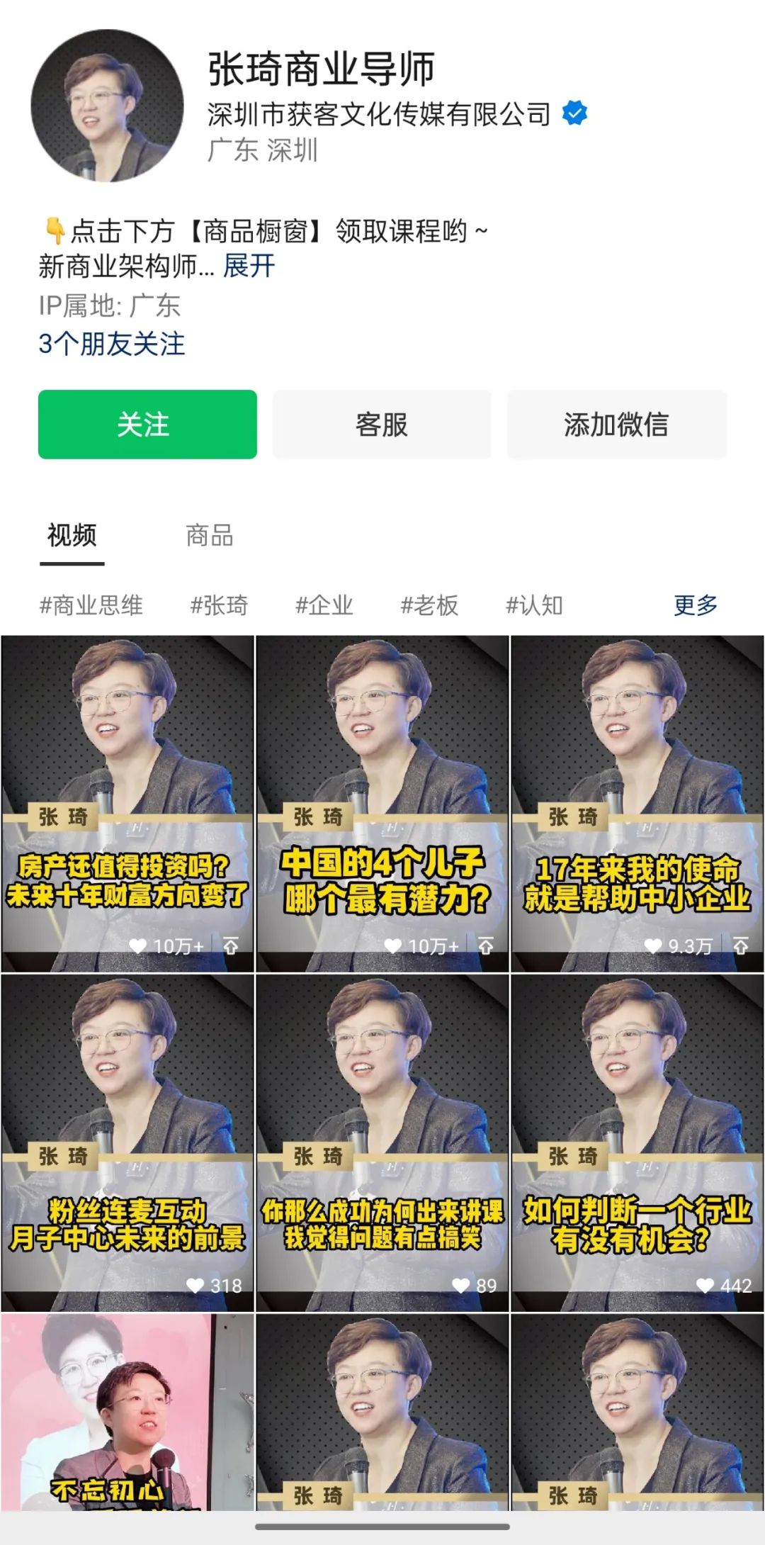 不过高速增长的前提是内容生态足够丰茂。「生态还不太给力」,前述MCN机构创始人观察,现在视频号的流量还不够大,质量也可以更高。以财经内容为例,目前头部号就跑出一个「张琦」,还是在抖音等平台同步火起来的。「张琦」号称500强企业咨询顾问,在视频号开设多个账号做矩阵,最大账号粉丝567万,「所以我们跟视频号的变现叫做‘IP千千万,张琦占一半’」。