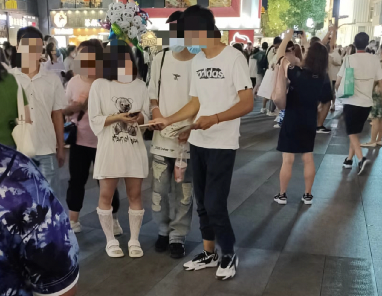 Tech星球在武汉江汉路步行街发现,在步行街的广场,可以看到多个地推团队在向群众推广App,并邀请他们扫码注册,有淘特,也有多多买菜的地推团队。