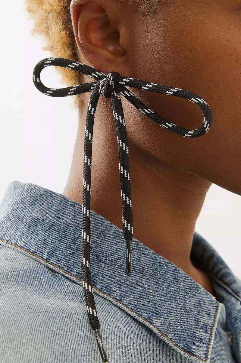 巴黎世家品牌创意总监Demna Gvasalia出其不意的脑洞,也激发了一些网友的动手能力。小红书上,一些网友分享了用自家黑白双色运动鞋带编织蝴蝶结的过程,俨然掀起了一阵鞋带耳环风格。