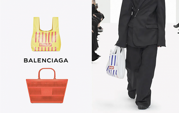 Demna Gvasalia深谙此道。2022春季,巴黎世家上市了一款“菜篮包”和一款“塑胶袋购物包”,在官网上的售价分别为2250欧元(约合16130元人民币)和990欧元(约合7000元)。毫无意外,这些产品引发了足够多的讨论。
