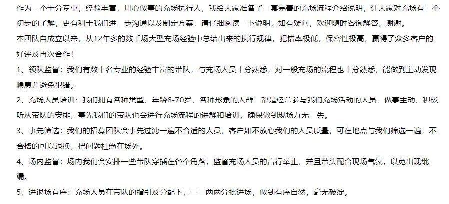 第三种情况是“品牌授意行为”,即花钱支付给第三方传媒广告公司,让后者组织兼职人员充场,按小时支付费用。