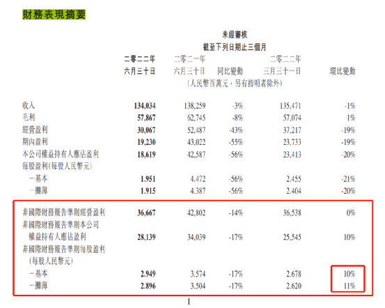 所以,如果从更准确反映主营业务的非国际报告准则来看,营收稳住,费用下降,最后经营盈利环比上升了10%。腾讯第二季度的业绩反而超过了第一季度。