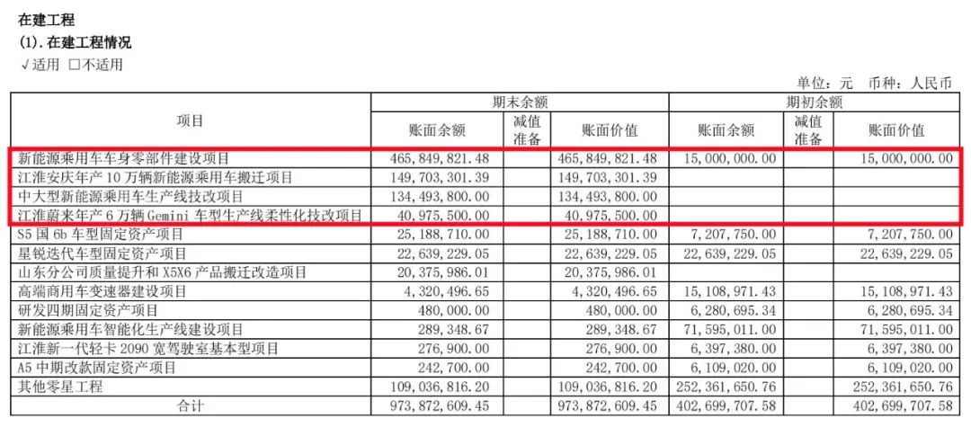 「子弹财观」在查阅江淮汽车2021年年报发现,资产负债表中的在建工程账面价值约9.74亿元,同比大幅增长141.84%。