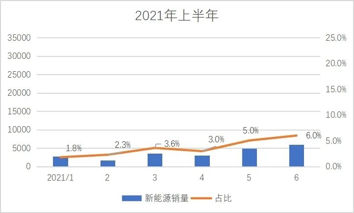 2020年吉利汽车总销量132万辆,新能源占比仅有5%左右。